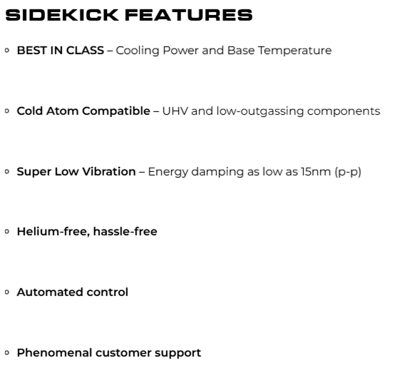 The SideKick is a sub-4K cryostat that delivers ultra-high vacuum (UHV) and ultra-low vibration performance. Compact and accessible, it maximizes table space while providing a clean, stable environment for your experiments.