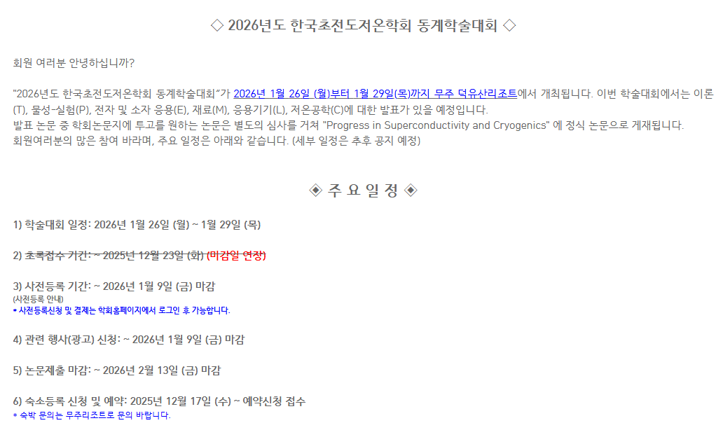 2026 동계 한국초전도저온학회(26.01.26~29)