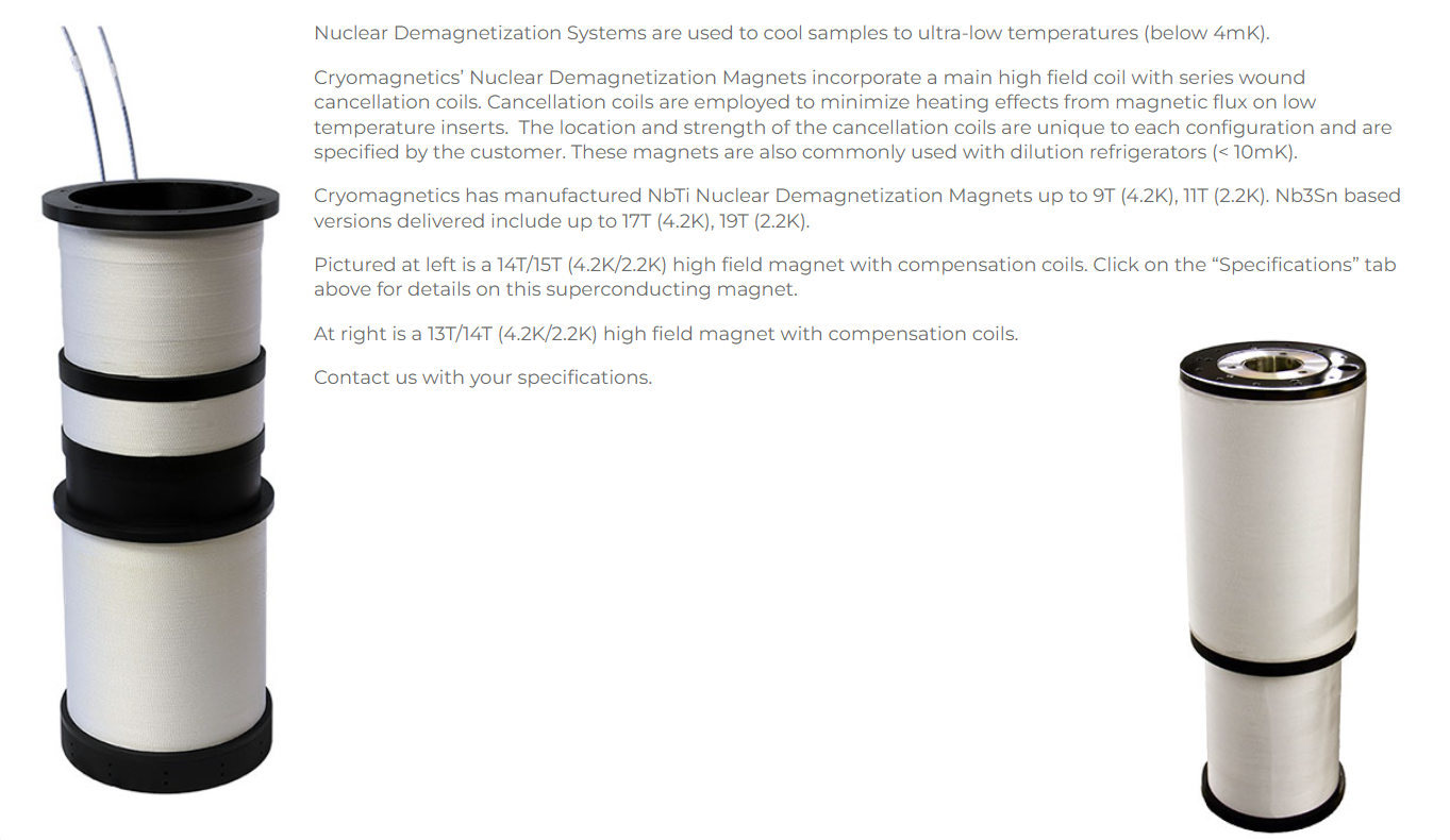 Nuclear Demagnetization Magnets
