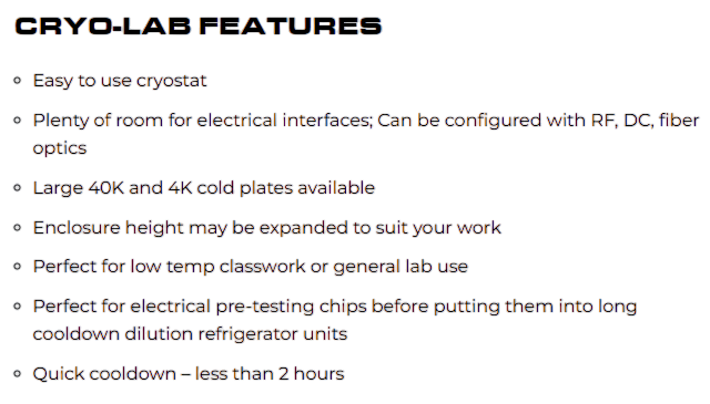Cryo-Lab is a low-cost tabletop cryostat with flexible electrical interfaces, powerful cooling, and a spacious chamber, making it a versatile system for research and education.